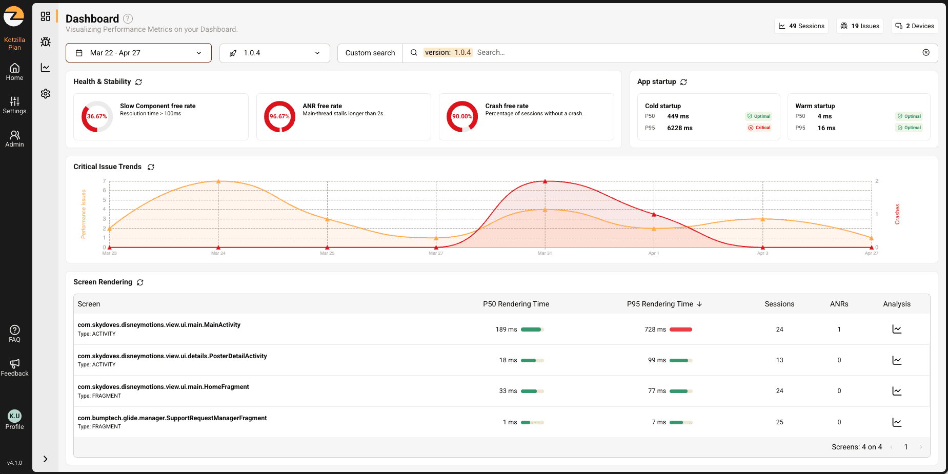Firebase Performance Monitoring has limits. Here's why Koin developers are choosing Kotzilla for deeper, actionable insights into performance issues and crashes.